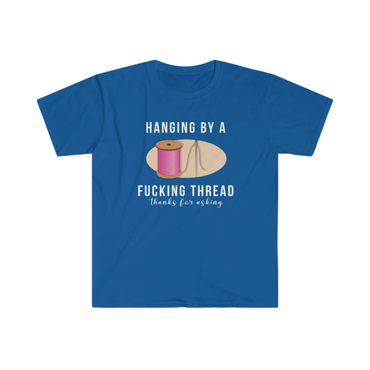 Hanging by a F@cking Thread Unisex Softstyle funny T-Shirt
