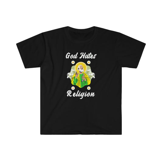 God Hates Religion funny Unisex Softstyle T-Shirt